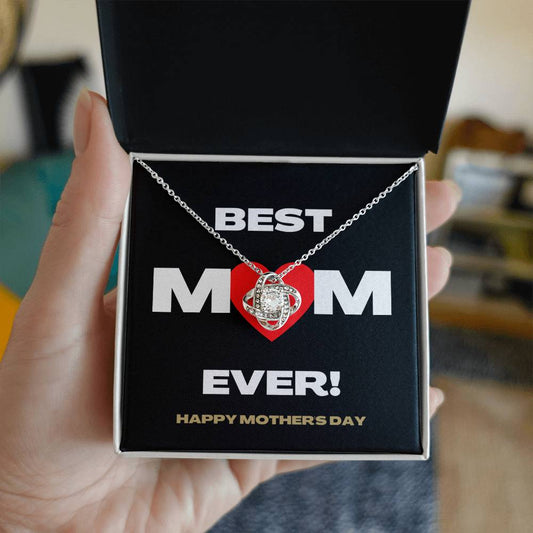 Best Mom Ever Love Knot Necklace | Mother's Day Message Card | Flower Pendant | Great Gifts For Mom