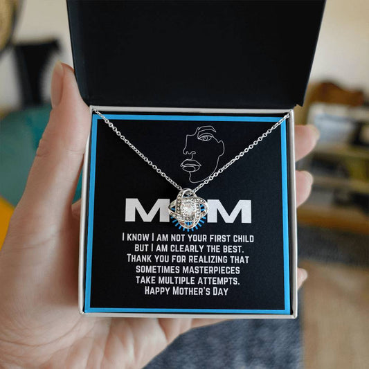 Love Knot Pendant and Necklace with Funny Message Card | From a middle or youngest child | Great present for Mother's Day | Gifts for moms